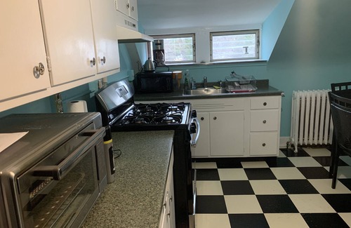 Newly decorated (Jan 2023) Cozy 2 brm with a separate open plan kitchen/living area in the prestigious Roland Park area of Baltimore. Apt has two separate bedrooms, 1 with King size bed and 2nd with a queen size bed. Open plan kitchen/living area has a dining area with dining table & 4 chairs, a sofa & armchair. There’s additionally a spare armchair in one of the bedrooms.
