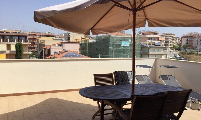 Attic, stylishly furnished, large terrace and sea view, 5 min. to the beach. | Apartment in Pozzallo