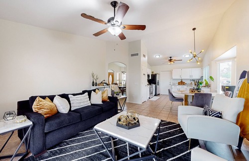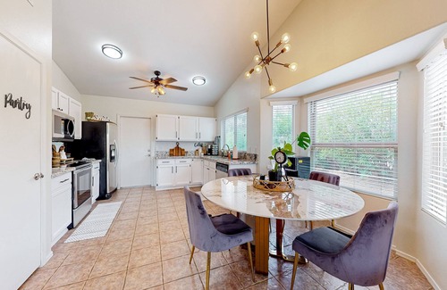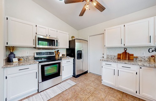 When you're not exploring all the area's great attractions or indulging in private backyard bliss, you'll find full family comfort inside the home with updated decor and all the modern essentials. The kitchen is equipped with all the major appliances, cookware, and accessories needed for stress-free meal prep. Free WiFi and smart TVs are provided for web browsing, streaming, and remote working. Additional perks include central air-conditioning and a private washer/dryer.