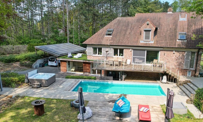 This luxurious 4-bedroom villa with a huge garden has everything to make your stay as pleasant as possible. You have your own swimming pool, jacuzzi, IR sauna, several cozy sitting areas with a wood fire, bbq and a garden bar. The playground equipment and trampoline make it ideal for a holiday with the family. The huge forest garden is also ideal for dogs, there is even an indoor and outdoor hutch, a dog cushion, food and water bowl that you can use freely. However, due to the size of the domain, it is not possible to fence it. An unforgettable holiday with the family? Do you want to improve ties with your team? Forgotten the daily hustle and bustle in an oasis of greenery? Looking for action and adventure? The possibilities in this villa are endless! This hidden gem is located near the Zolder circuit and a fifteen minute drive from Hasselt, several well-known attractions and sights are nearby. The domain itself has 2 entrances, which means that mobile homes passing through are certainly welcome. Via a large driveway you reach the house with the living room on the ground floor with a beautiful terrace and a view over the enormous garden and fully equipped kitchen. Upstairs are 3 bedrooms and a bathroom, one floor below the living areas you have a separate bedroom with a fantastic view of the pool and another bathroom with an IR sauna cabin. You only have to pay a deposit of 150 € in cash upon arrival if you wish to use the bubble bath. In short, luxury in the Limburg woods! With a Belvilla you are assured of a successful holiday. There is always a Belvilla that will give you an unforgettable holiday. We have a surprising and wide range of unique holiday homes for the summer holidays, a weekend away or a week of winter sports. The range consists of more than 40,000 holiday homes in 20 European countries. Unique holiday homes with typical regional features in beautiful locations, whether on the coast, high in the mountains or centrally in the city center. Think of authentic country houses with swimming pool in France, special agriturismos in Tuscany, sturdy chalets in the Alps or large houses in the Ardennes. For a family, a couple or for a large group. You will find them in the most beautiful places, so there is plenty to do and discover for everyone! We are constantly looking for new homes and new destinations that fit the needs of our guests. A Belvilla gives you the freedom to have breakfast in pajamas or have long conversations without having to pay attention to the closing time of the bar. You can make the most delicious dishes with local ingredients and you can take a relaxing dip in the private swimming pool whenever you want. In short, all the privacy in your temporary home! And this close to the local population, so that you can soak up the atmosphere of the region or village. The homeowner or manager is discreetly your point of contact on site and is happy to give special tips about the area.