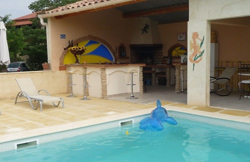 come and join us in this calm and relaxing place where you will be warmly welcomed in the heart of the Côtes du Rhône vineyards facing the Dentelles de Montmirail and Mont Ventoux the Giant of Provence! The house benefits from a breathtaking view of the swimming pool to be shared with another rental. The villa consists of an independent entrance, fully equipped kitchen living room with flat TV, CD, DVD, video recorder .... two bedrooms, a bathroom and 1 separate toilet Outdoor garden furniture with bath sun and BBQ Nearby with its fridge and summer kitchen you can climb the Dentelles de Montmirail, a few kilometers climb Mont Ventoux, on foot or by bike. The villa is at the start of your hikes, we will guide you for cellar tours, hiking tours, and other activities! in rasteau in may gourmet getaways, in july the votive festival and the night of august 14 wine festival find out at OFFICE DE TOURISME de RASTEAU !!! and many others that we will tell you as you stay with us!
