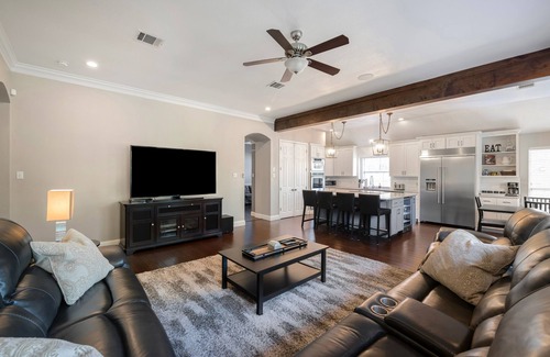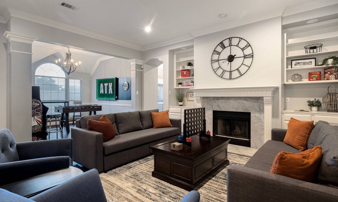 THE ATX LUXE PLAY Home is in a charming North Austin neighborhood and is the perfect place for you, your family, and friends to stay. This home has all you’ll need, for all ages to enjoy ! The convenient location provides easy access to I-35 making outings hassle-free. You are only minutes away from The Domain, Arboretum, Lake Austin, COTA racetrack, Austin FC stadium, Moody Center, UT, and downtown. This stylish 3000 sqft residence is the perfect place to stay during your Austin getaway.