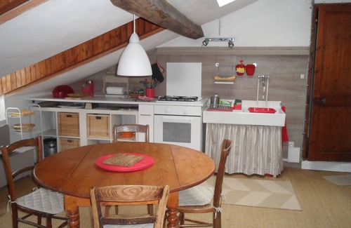 This atypical loft offers a large 50m2 space organized with a parents' bedroom (1 double bed) and an alcove with two single beds (2 single beds). The configuration is ideal for a single couple or a couple with two children. A kitchen area, a lounge area, a separate shower room with wc. Wi Fi available, You can enjoy the private garden. 5 mins walk from the village and the beach.