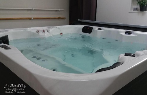 Offering a garden, AU BOIS D'ORÉE provides accommodations in Liré. This property offers access to a terrace, free private parking, and free Wifi. The guest house has a picnic area and a spa facilities. There is a seating area, a dining area, and a kitchen complete with an oven, a microwave, and a toaster. For added privacy, the accommodation features a private entrance. Guests can make the most of the warm weather with the property's barbecue facilities. The guest house also offers an indoor pool and a hot tub for guests to relax in. Le Lieu Unique is 24 miles from AU BOIS D'ORÉE, while Castle of the Dukes of Brittany is 24 miles away. Nantes Atlantique Airport is 28 miles from the property.