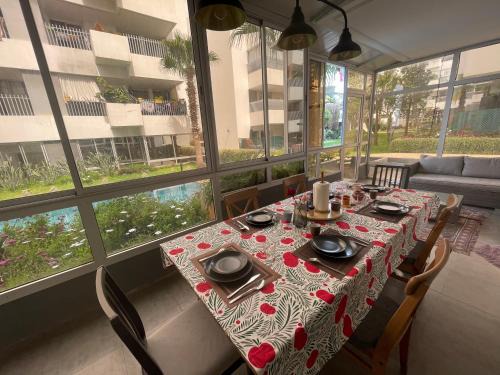 Au Cœur Des Sables D’or - Harhoura is a recently renovated apartment in Temara, near Plage Sable d'Or. This apartment offers air-conditioned accommodations with a terrace. The apartment features parking on-site, an outdoor swimming pool, and a 24-hour front desk. With free Wifi, this 3-bedroom apartment provides a satellite flat-screen TV, a washing machine, and a fully equipped kitchen with an oven and microwave. A private entrance leads guests into the apartment, where they can enjoy some fruit and chocolates or cookies. The property has an outdoor dining area. A selection of options including local specialities, juice, and cheese are served for the continental breakfast. There is an on-site coffee shop. Guests can relax in the garden at the property. Plage des Contrebandiers is a 14-minute walk from the apartment, while Plage Sid El Abed is 0.8 miles away. The nearest airport is Rabat-Salé Airport, 17 miles from Au Cœur Des Sables D’or - Harhoura.