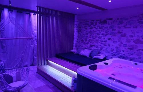 16 miles from Eurexpo in Vaulx-Milieu, Au Milieu des Secrets offers accommodations with free Wifi and access to a sauna, hot tub, and spa facilities. Guests staying at this vacation home have access to a terrace. Outdoor seating is also available at the vacation home. The vacation home consists of 2 bedrooms, a living room, a fully equipped kitchen with a dishwasher and a coffee machine, and 1 bathroom with a hot tub and bathrobes. Towels and bed linen are offered in the vacation home. There's also a seating area and a fireplace. Groupama Stadium is 18 miles from Au Milieu des Secrets, while LDLC Arena is 18 miles from the property. Lyon - Saint Exupery Airport is 21 miles away.