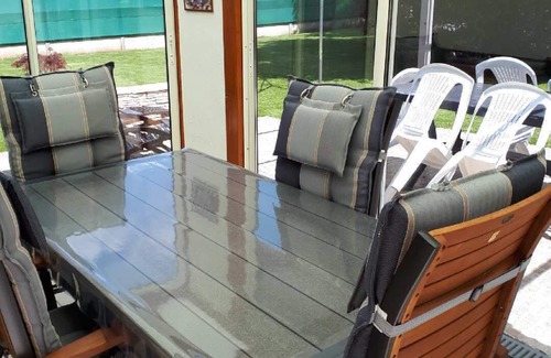 Free arrival day all year. Detached house of 125 m² with garden of 1200 m² fully enclosed (good sunny exposure) including, on the ground floor: an independent kitchen of 25 m², fitted and equipped, a living room (2 sofas, 1 fireplace, TV ) and a stay of 30 m ², 3 rooms: 1 room with 1 bed 140x190, 1 room with 2 beds 90x190, 1 room with 2 beds 90x200. The single beds are twin, 1 bathroom (1 large basin, 1 shower). Terrace with pergola, sunbathing, veranda. Upstairs, a games room: board games, baby foot, reading corner. Baby equipment provided. sunbathing, bicycles, petanque. Electric shutters. Wood for fireplace: 10 € the basket. Pets allowed after agreement with the owner. 4G connection.