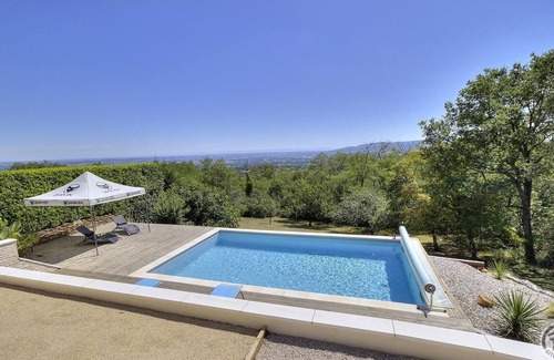 Typical studio, this gîte (44 sq.m.) is located on the ground floor of owners' house and has direct access to shared and heated swimming-pool. Ideally situated, just 13 km from the city of Villefranche-sur-Saône, 25 km from Lyon and 600 m from the center of Charnay, a lovely village full of character in the Pierres Dorées region. Very light studio (thanks to 2 large bay windows), tastefully renovated. Modern decor. Entrance via terrace (1 outside step) in living room : dining area (billiard table), lounge area (top quality sofa bed that provides sleeping arrangement for 2 people (160 X 200 cm), HD TV with SFR box), fully fitted kitchen area (2 steps for access). Shower room including Wc. On request : access to owners' laundry room (with washing machine and tumble dryer), travel cot, extra single bed (to separate sleeping arrangement) Bed linen, towels, household linen, towels for the pools and final cleaning are included in rent. Outdoors : gravelled terrace, garden furniture for 2, sunshade, lovely open view over the Beaujolais vineyard, the Alps and the Mont Blanc (on clear days). Private petanque court, tennis table and dartboard. Gas plancha on request. Private parking very near. At your disposal : owners' swimming-pool (8 m X 5 m, depth 1.5 m, accessible by 4 stairs from terrace) open from early May to late September from 09H to 20H. Deck chairs. Large shared grounds with fruit trees, lawn, wooden deck. Charging of electric vehicle possible on site (extra charge). Golf practise of Lucenay 6 km away, listed village of Oingt 12 km.