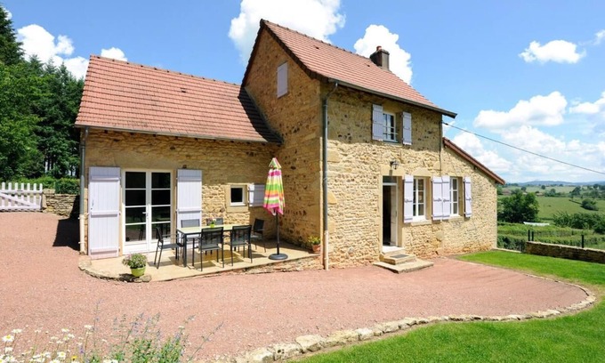 Beautiful 19th century country house with character, carefully renovated in the heart of the Brionnais countryside, on the edge of forest and meadows, in a splendid unspoiled setting of greenery and nature. Ultra privileged location on the hillside exposed (south-east), in the hollow of a charming green valley of pastures, overlooking a pleasant little typical hamlet as a belvedere. Absolute calm and tranquility. Rural setting & beautiful site, literally enchanting. A real little corner of paradise on earth (without vis-à-vis any) for young and old alike, 1.5 km from the charming village of Vareilles, traditional & authentic, with a beautiful 11th century Romanesque church. Comfortable gîte. Warm country character. Large exposed and shaded terrace. Pleasant enclosed land carefully landscaped and flowered with a courtyard, a lawned garden and a small playful & panoramic sheltered area with deckchairs, ideal for a nap. Magnificent panorama over the surrounding countryside and the Charolais bocage. Stunning landscapes. Composition of the gîte: Single-family house in duplex. Ground floor: kitchen open to the living room, lounge area with TV; 1 bedroom (140cm bed), bathroom (walk-in shower 90x170cm), separate WC. 1st floor: 1 bedroom divided into 2, separated with curtain (2 beds 90x190cm / 1 bed 90x190cm). Electric heating. Enclosed grounds: courtyard, patio and terrace. Private parking. Bicycle storage room. Shops & services 4 km. Station 4 km. Mâcon Loché TGV station 58 km.