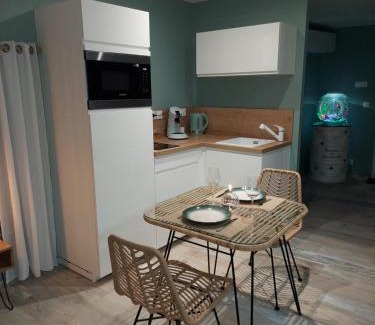 Au Spa d'eau pâle offers accommodations in Ferques, 10 miles from Cap Gris Nez and 12 miles from Boulogne-sur-Mer Museum. This apartment offers free private parking and free Wifi. Cap Blanc Nez is 13 miles from the apartment and Calais Railway Station is 16 miles away. With direct access to a terrace, the air-conditioned apartment consists of 1 bedroom and a fully equipped kitchenette. A flat-screen TV is offered. The accommodation is non-smoking. Boulogne-sur-Mer Tintelleries Train Station is 12 miles from the apartment, while Boulogne-sur-Mer Train Station is 13 miles from the property.