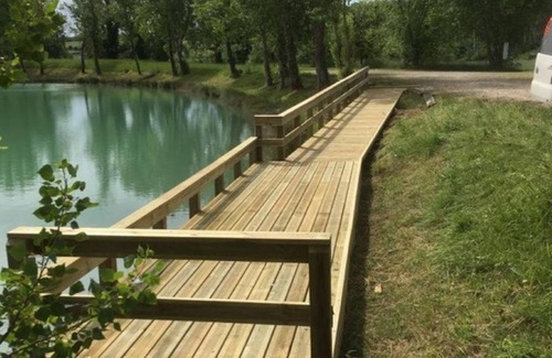 Guests can swim in the outdoor swimming pool, go fishing, or relax in the garden and use the barbecue facilities.
