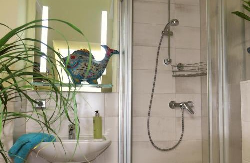 Auberge L'Art enjoys a location in Erfurt, 2.8 miles from Erfurt Central Station and 5.2 miles from Messe Erfurt Convention Center. This guest house offers free private parking and a shared kitchen. The guest house provides city views, an outdoor fireplace, a 24-hour front desk, and free Wifi is available throughout the property. The guest house provides guests with a terrace, garden views, a seating area, satellite flat-screen TV, a fully equipped kitchen with a dishwasher and an oven, and a private bathroom with shower and a hair dryer. A microwave, a toaster, and fridge are also provided, as well as a coffee machine and a kettle. At the guest house, every unit has bed linen and towels. Buffet and continental breakfast options with warm dishes, local specialities, and fresh pastries are available. Guests can relax in the on-site lounge, while packed lunches are also available upon request. For guests with children, Auberge L'Art features a baby safety gate. There is a garden with a barbecue at this property, and guests can go cycling and hiking nearby. Buchenwald Memorial is 12 miles from the accommodation, while German National Theater is 14 miles from the property. Erfurt-Weimar Airport is 5 miles away, and the property offers a paid airport shuttle service.