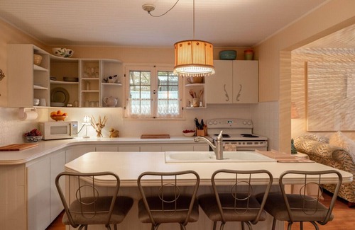 The house has two floors and can accommodate up to 6 people. Full bathroom. The main floor has a living room, a full kitchen and a dining room with a beautiful porch.