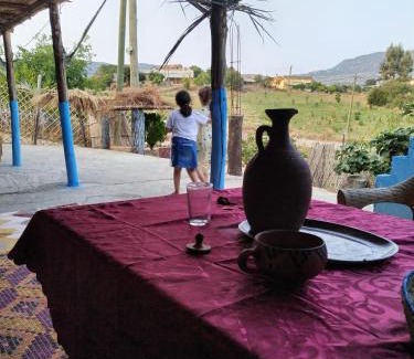 Auberge yeswal aoulad yaakoube in Bourkiz provides accommodations with a garden, barbecue facilities, and a shared lounge. This guest house offers free private parking and a 24-hour front desk. The accommodation provides a shared kitchen, full-day security, and luggage storage for guests. Some accommodations include a terrace and a seating area with flat-screen TV, as well as air conditioning. At the guest house, the units include a shared bathroom. A selection of options including warm dishes, local specialities, and fresh pastries are available for the vegetarian breakfast. There is an on-site restaurant and coffee shop. Guests at the guest house will be able to enjoy activities in and around Bourkiz, like walking tours. The guest house has a picnic area where you can spend the day outdoors. Fès–Saïs Airport is 79 miles from the property.
