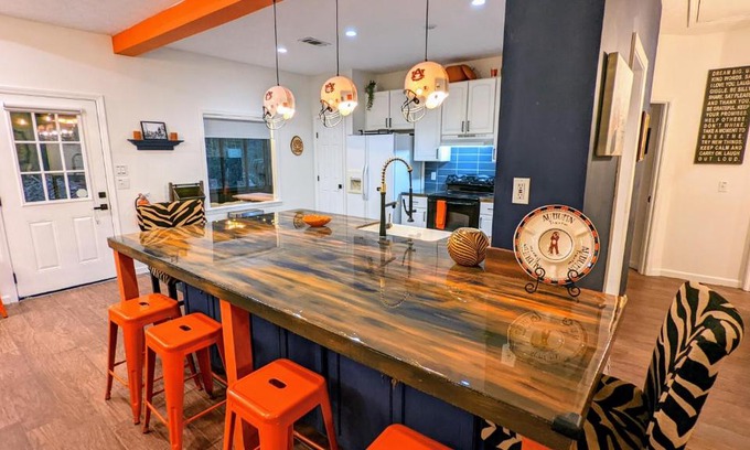 Offering a garden, Auburn Alumni House on 20 acres features accommodations in Salem. This vacation home provides free private parking and a concierge service. Staff on site can arrange a shuttle service. Leading onto a terrace with quiet street views, the spacious vacation home consists of 4 bedrooms. The air-conditioned vacation home also offers a flat-screen TV, a fully equipped kitchen with a dishwasher, a seating area, washing machine, and 2 bathrooms with a walk-in shower and a bath. This vacation home is allergy-free and non-smoking. There is an on-site bar. You can play billiards at the vacation home. Auburn University is 19 miles from Auburn Alumni House on 20 acres, while Jordan Hare Stadium is 20 miles away. The nearest airport is Columbus Airport, 22 miles from the accommodation.