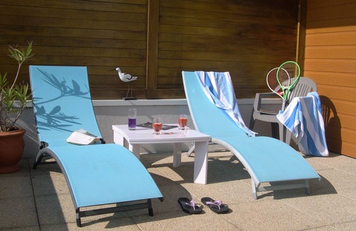 new apartment seaside decor, 2 rooms for 2 people 42m2, 17m2 terrace. Sea 20m away, calm guaranteed, town center on foot.