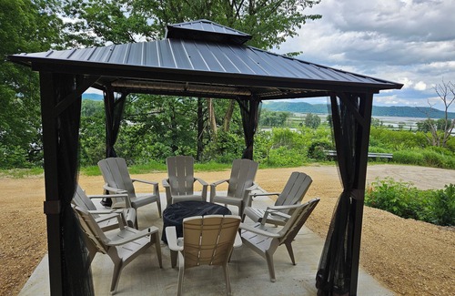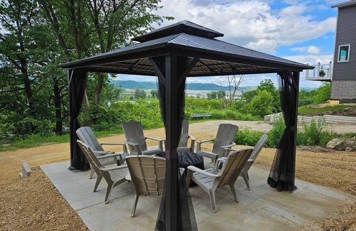 This 2017 built home overlooks the beautiful Mississippi River. It is located 15 minutes from La Crosse W, 15 miles from New Albin, and 27 miles from Lansing, IA. It is within a mile distance from a boat launch and about 3 miles of a public boat launch away Wild Cat Campground. This area is host to whitetail deer, wild turkeys, bass, northern pike, walleye, and various pan fish. Our home is right on the Mississippi River Trail for bike riders. (The house is only available in summers..we live here in the winter.)