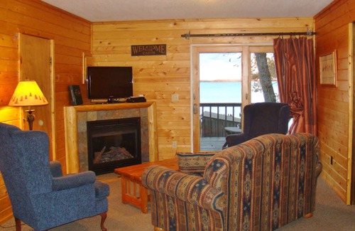 - Lakefront retreat on Island Lake. Two cabins, 7 bedrooms, sand beach, privacy+