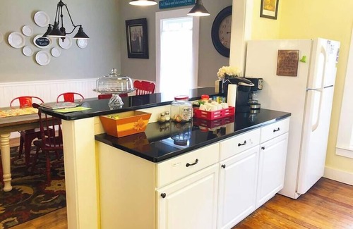 Welcome to Aunt Hattie's Farmhouse! Beautiful Farmhouse in Llano, Texas, Within Walking Distance to Square & Llano River. 3 Bedrooms that includes a Sunroom With A Daybed with pop-up Trundle (2 singles), 2 Bathrooms, Sleeps 6. This charming farmhouse has been completely renovated to add comfort and convenience while exploring the lovely town of Llano. Pet-Friendly. This 115 year-old farmhouse has been completely renovated to add comfort and convenience. Inside you'll find three bedrooms--one with a King-size bed, one with a Queen-size bed, and an inside sun room that has a Daybed with a pop-up trundle (2 twins) to make sleeping for six. One bathroom contains the original clawfoot tub with a hand-held shower sprayer, and the other bathroom has a shower/tub combination. The living room and dining room are in the center of the open floor plan, while the full kitchen is separated from the dining room by a granite-topped bar. A washer and dryer are provided for guest's convenience. With an inviting front porch and large back wood deck, the house has fantastic spots to sit and relax--inside and out. The roomy fenced back yard is just right for pets, children or the whole family to explore and play. Guests will have full access to the whole house, including full kitchen with supplies, and large backyard with wood deck. The front door has a keypad lock. Type the code and turn the knob to the left. To lock the door from the outside, type the code and turn the knob to the right. Check-in is anytime after 3:00 pm, and check-out is 12 noon. I am available if guests need anything during their stay. Llano is a small, quaint town with a historic town square/courthouse. There are many fun shopping and restaurants, a wonderful river, several parks, splashpad and lovely hill country scenery. Getting around Llano is fairly easy, as it is a small town. We literally have only 2 traffic lights in the whole town. The town square, river, restaurants, shopping and parks are within walking distance of the home. We provide breakfast items in the refrigerator for guests to prepare at their leisure, as well as snacks and water.