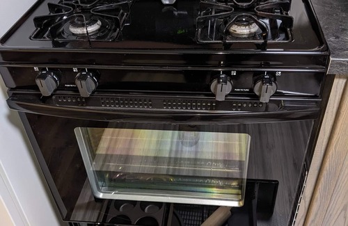 The 55" Roku TV has an antenna for local channels. The washer and dryer and a full over twin daybed are in the living room. And there is a propane grill and seasonal outdoor seating with a patio in the back yard.