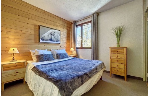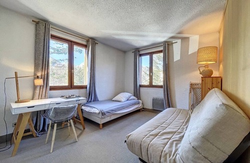 Magnificent 3-room apartment 70 m2, 1 bathroom and a shower room, 2 bedrooms (1 large bedroom with single bed and a double sofa bed, a second master bedroom with adjoining shower room and numerous closets), a living room dining room with new kitchen, facing south and west, small terrace, garden of the condominium, free shuttle leading to the resort at the foot of the building, open view of the mountains.