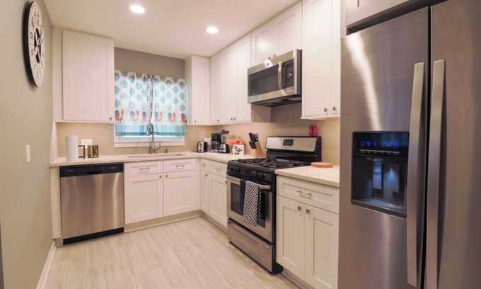 The home has everything you need for a comfortable stay, king size bed, 1 car garage, and an additional parking spot, washer and dryer, fully stocked kitchen with stainless steel appliances and under cabinet lighting. The living room has a sofa sleeper if you need an additional bed, 4k smart tv and high speed internet for your entertaiment.