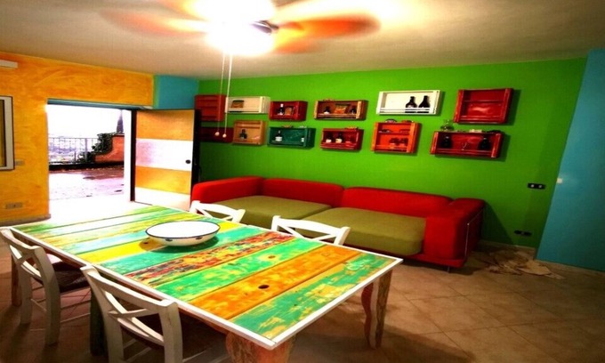 Casa Francesco is a small property on two levels. Downstairs: kitchen, living room and a double sofa bed. Upstairs, which is accessed via a spiral staircase there is a very particular bedroom, full of color and equipped with a bathroom with shower. The bedroom leads to the balcony. Thanks to its position, the house guarantees a relaxing stay. Located in the spa area, through the balcony of the bedroom located on the first floor you can enjoy a panoramic view of the valley of Contursi Terme.