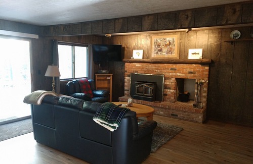 Ideal for several couples or a large family and perfect for the up north get away. One BR with a queen size bed and a full BA on the main floor, and 2 BR and a 1/2 BA on the second floor, 2 full size beds in one bedroom and a queen size bed in the other bedroom with a balcony overlooking the River. A full size kitchen and a wood burning fireplace adds to the rustic feel. Close to all attraction the North provides - blue ribbon trout fishing, kayaking, snowmobiling, hunting,skiing and much more. One dog allowed with an additional daily fee of $35.00 per day per pet.