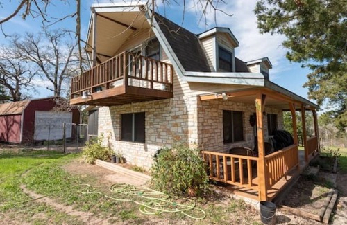 Cozy barn style 2 story stoned home located on five acres of private, quiet land. Fenced and gated property with awesome, quiet neighbors not too close by. Situated only 20 minutes from Central Austin and 10 minutes to the lovely, small town of Bastrop for quaint shops and eateries. Come enjoy a quiet, relaxing vacation away from all the busy, hectic daily life while enjoying all that Austin and Bastrop have to offer!