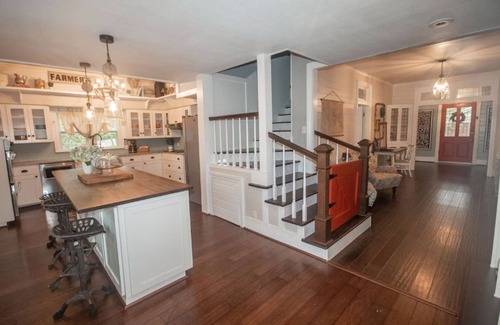 This historical remodeled farmhouse is full of amenities and charm! Originally built in the 1800's, this was the original stagecoach on the Chisholm Trail in this area! The 100 year oak trees throughout the property are truly magical, and if you look close, you can see the ring that was used to tie up the horses imbedded in the tree up front!