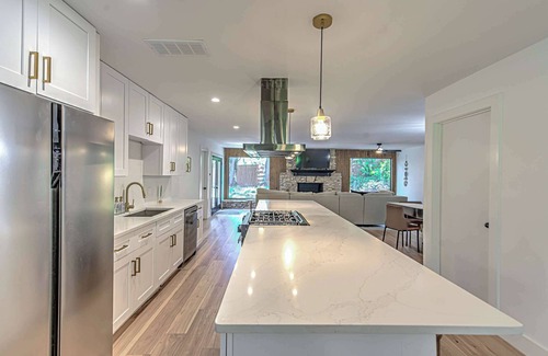 Experience modern Austin living in this newly renovated 4BR, 2BA home near top hotspots. With high-end finishes, marble counters, and two king bedrooms, this home sleeps 9 comfortably and offers style + comfort for groups and families. Enjoy Smart TVs, a chef's kitchen, open layout, and a fantastic location just 10–15 minutes to SoCo, downtown, and Zilker. Whether you're here for fun or focus, Austin Highlands Retreat offers the perfect ATX home base.