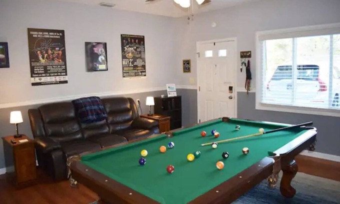 This is not your typical rental! It’s created for family fun and up to 6-8 guests. This 1,800 sq. ft. home is located on Johnson City’s east side, just minutes from Jonesborough, ETSU, the Med-Tech corridor, Kingsport, & Bristol, baby! Comfort was our primary consideration with thoughtfully selected brand-new mattresses, some new furniture and fixtures, and a well-stocked kitchen. This house is equipped for FUN with a pool table, air hockey, ping-pong, and video arcade console.