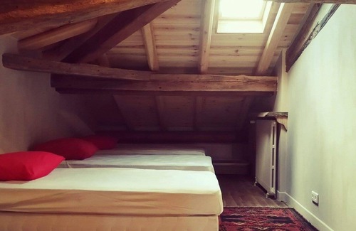 - Floor 40 m²: large bedroom under the roof with 6 90/200 beds (possibility of transforming 2 90cm beds into a 180cm double bed), a bathroom (large shower, bath, wc).