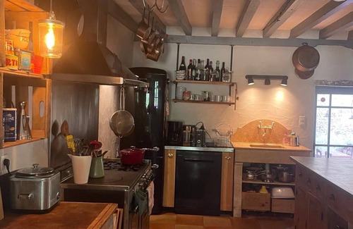 - A kitchen / dining room of 60 m² equipped with a fireplace and a cooker (5 gas burners / 2 electric ovens) - stone sink