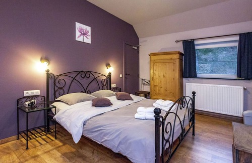 The holiday home has central heating and offers wonderful views across the vast fields and meadows. Gather around the fireplace in the living room for a nice drink while the children play on the playground equipment in the garden. You can be on the terrace to enjoy barbecue evenings with wine. Parking is available.