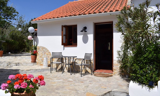 Cozy double house with a vide. The cottage has a terrace at the front and one at the rear. The living room has a sitting area with TV and a dining area. The sleeping area is on top of the mezzanine. The kitchen is equipped with all the necessities for cooking, a stove, toaster, coffee maker and kettle. From the rear terrace you have access to the garden with fruit trees. There is no swimming pool. The place is very suitable for travelers who love peace and nature. With the car you are quickly at the beach, 10 minutes, or one of the historic places nearby, such as Alcobaca and Obidos.