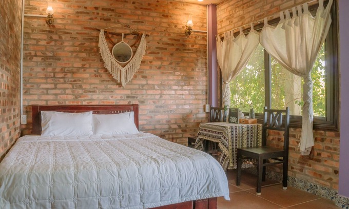 Welcome to our family's hidden home in Hue, a charming two-story Asian-style brick house nestled amidst an open garden kitchen, the family's green vegetable garden, a fruit orchard, and various shade trees. Right beyond our wooden gate lies a peaceful village road with just 15 households in Cư Chánh village, Thủy Bằng, Hue City, at the foot of pine hill and beside the romantic, tranquil Perfume River.