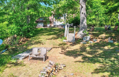 OUTDOOR LIVING: Direct lake access, private & expansive yard, chiminea for outdoor campfires (bring your own firewood), wooden Adirondack chairs, lounge chairs, beautiful towering pine trees, abundant open space, ample sun and shade
