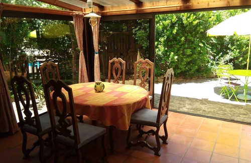 Mas restored in 2007 with a private infinity pool, with two bedrooms with double bed and a child bed on the mezzanine with a single bed and an extra bed, a bathroom and a shower room, two WCs. Very quiet, close to the hill, pleasant terraces and garden, table tennis, ideal for walking or cycling, sandy beach 1Km away, close to all shops.