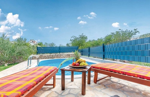 This authentic traditional stone house in the small village Nečven is the best choice for arelaxing holiday in the middle of countryside surrounded by greenery of the national park Krka. The rustic stone holiday home offers everything you need to enjoy the stay in the country of Dalmatinska Zagora.The house hasspace for 6people with three bedrooms and two bathrooms. On theground floor there is a kitchen, dining and living room, one bedroom and one bathroom. On the second floor there are two bedrooms and a bathroom. The living room and the dining area are an open space connected with a fully equipped kitchen. In front of the house there is a terrace with an outdoor dining area with pool view and BBQ facility. The pool has 20 square meters and is equipped with sunlounges and a parasol.The owner produces an award winning olive oil and together with the special stone built into this house tells a story of tradition and Dalmatian heritage.