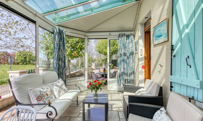 Apartment ground floor for 5 persons (classified 3 keys) and 3 stars with kitchen, 2 bedrooms, bathroom, W. C. Recent veranda converted into living room in tidy renovated independent house with well maintained garden with another independent apartment