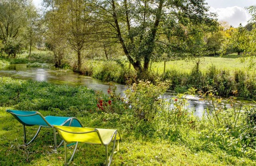 On the ground floor: large living/sitting room with fireplace, TV, phone, Wi-Fi, kitchen area (dishwasher, microwave), basement (toilet, washing machine). Upstairs: 1 bedroom with 2 single beds, 2 bedrooms with a double bed (160 cm), bathroom with bath + shower and toilet. Baby bed. Beds made included. Electric heating at extra charge. Optional housecleaning service: 45€. Tourist tax. After watching the water flow, nestled in the hammock, go down the river in a canoe! Or warm yourself up by a wood fire, enjoying the tranquillity of this old building, after a walk in the forest or on the bison farm! The church bell punctuates the days. Quick access to the sea in Dieppe, a small town, lively all year round. Large enclosed garden, outdoor games, unprotected river nearby, garage.
