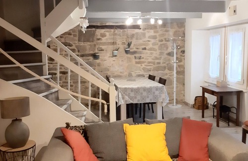 Gite sans jardin, au coeur du bourg typique de Poullan sur Mer, a proximité de tous commerces : boulangerie artisanale, boucherie traditionnelle, bar-tabac, restaurants, de la très belle pointe de la jument qui est accessible à pieds : 15 minutes de marche.