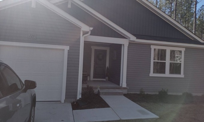 Just 20 minutes to Fort Liberty. We are a 50-minute drive from RDU airport. Brand new build. Each bedroom has its own TV. Washer and dryer with detergent. Well stocked kitchen for your cooking needs. Lovely, quiet, safe neighborhood.