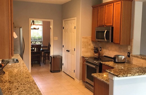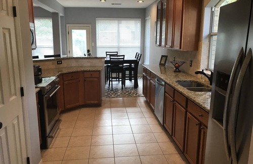 Available now. Perfect family home in a cul-de-sac with a huge, fenced backyard in the heart of The Woodlands with easy access to Research Forest and Branch Crossing. Granite countertops, stainless appliances, and frameless showers. Travel themed decor. It is an amazing property and has great reviews from previous guests. Huge master bedroom and bathroom with oversized tub, separate frameless shower, and walk in closet. Large backyard has a patio with fire pit and outdoor furniture. 4 huge flat screen TV’s with Hulu cable TV, WiFi, xBox and 2 DVD players inside. Hi speed internet (418 Mbps) for streaming and Zoom meetings. Come visit family nearby or do some house hunting or work from home and enjoy The Woodlands. Check out the reviews of this highly rated property! And it's probably not too early to start thinking about the holidays. Texas is wonderful in the winter! I grew up in Wisconsin, Snowbirds welcome!