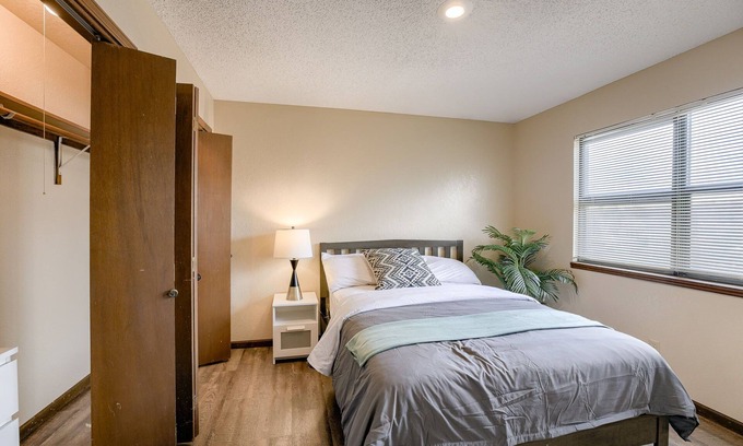 Welcome to the Aviator's Lounge, a spacious 2-bedroom apartment near the airport. Each bedroom features a comfortable queen bed, perfect for restful nights. The unit is equipped with a washer and dryer for your convenience, making it ideal for longer stays. Families will appreciate the high chair, making it a great choice for those traveling with kids. With a stylish living area, modern amenities, and a prime location, this apartment offers the perfect blend of comfort and practicality.