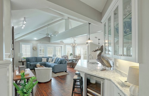 This luxury beach cottage is your home base for your escape with all the comforts of you’d expect at home. The kitchen has everything you'll need, from a gorgeous granite countertops, stainless steel appliances including gas-range oven stovetop, wine fridge, microwave, coffee machine, toaster, dishwasher, refrigerator, pantry and nearby balcony BBQ.