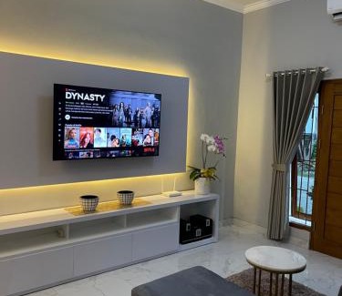 AW Lor House - Yogyakarta is a recently renovated vacation home in Sleman where guests can make the most of the garden and bar. This property offers access to a terrace, free private parking, and free Wifi. The accommodation features a 24-hour front desk and full-day security for guests. This vacation home includes 3 bedrooms, 2 living rooms and a flat-screen TV, an equipped kitchen with a dining area, and 3 bathrooms with a bidet and a washing machine. The air-conditioned unit at the property features a shower and a dressing room. The vacation home offers bed linen, towels, and ironing service. A mini-market is available at the vacation home. Both a bicycle rental service and a car rental service are available at the vacation home. Tugu Monument is 5.6 miles from AW Lor House - Yogyakarta, while Yogyakarta Tugu Train Station is 6.7 miles from the property. Adisutjipto Airport is 8.1 miles away.