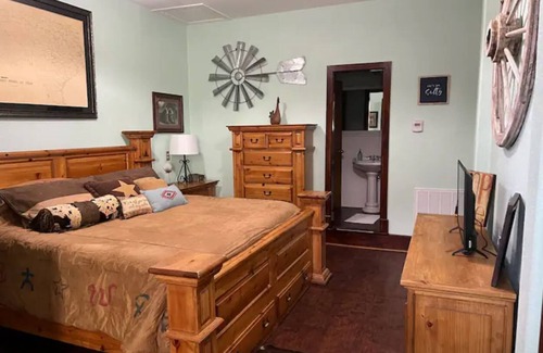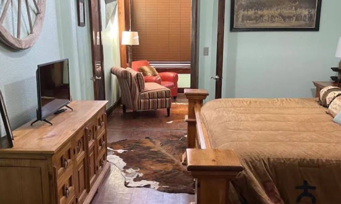 Take it easy at this unique and tranquil getaway. The cowboy style will embrace you while you rest in out spacious king bed. With a little sitting area to hanging out, private cozy bathroom. Property centrally located for your convenience.