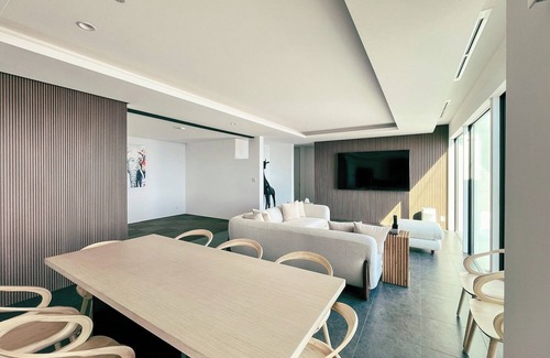 / BBQ grill and pizza oven included Feel free to bring your own ingredients All rooms are equipped with sauna jacuzzi pool BBQ grill and pizza oven Guest rooms Living room Enjoy NETFLIX free of charge on the 85inch large TV Dining kitchen Various cooking utensils and tableware are provided Bedrooms 24 people Relax in a kingsize bed C201 is queensize Free room Relax on the Ryukyu tatami mats Use the provided bedding to use as a bedroom Terrace Equipped with BBQ grill
